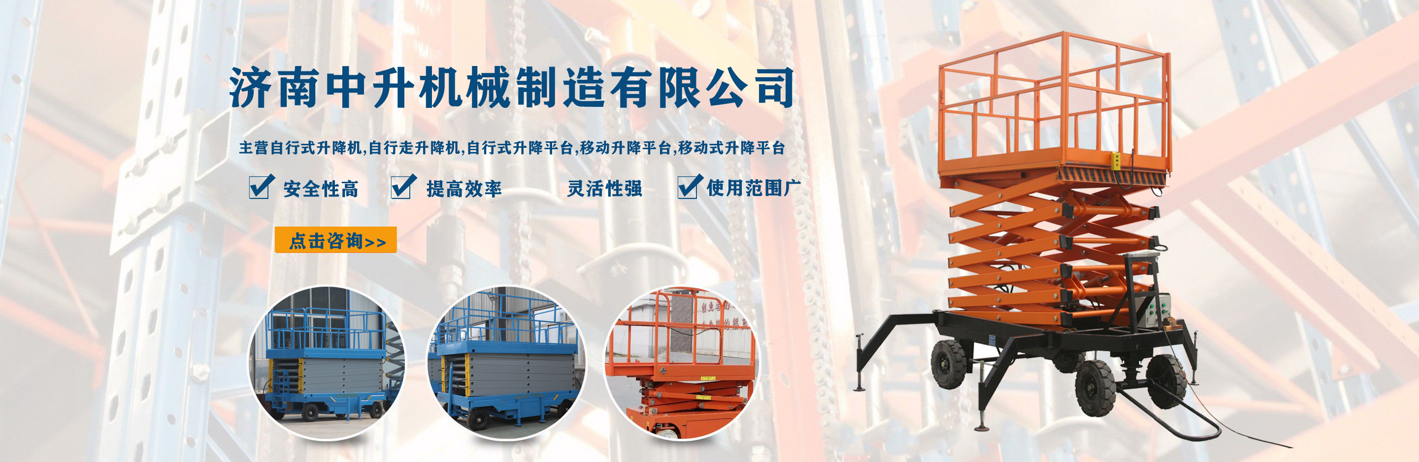 濟南中升機械制造有限公司主營自行式升降機,自行走升降機,自行式升降平臺,移動升降平臺,移動式升降平臺等產品,產品廣泛用于廠房維護、工業(yè)安裝、設備檢修、物業(yè)管理、倉庫、航空、機場、港口、車站、加油站、體育場、展覽館等多種行業(yè)和場所, 公司設備精良、工藝合理、檢測手段齊全,技術力量充足,公司創(chuàng)立伊始即本著“專注、專心”的經營理念,依托技術團隊優(yōu)勢和設備硬件保障,全力打造良心的升降平臺企業(yè)。 我公司始終以“品質為本,服務至上”作為企業(yè)宗旨。只要你訂購了我公司的產品,無論你身處何方,我們都會及時派出技術人員為你服務!...